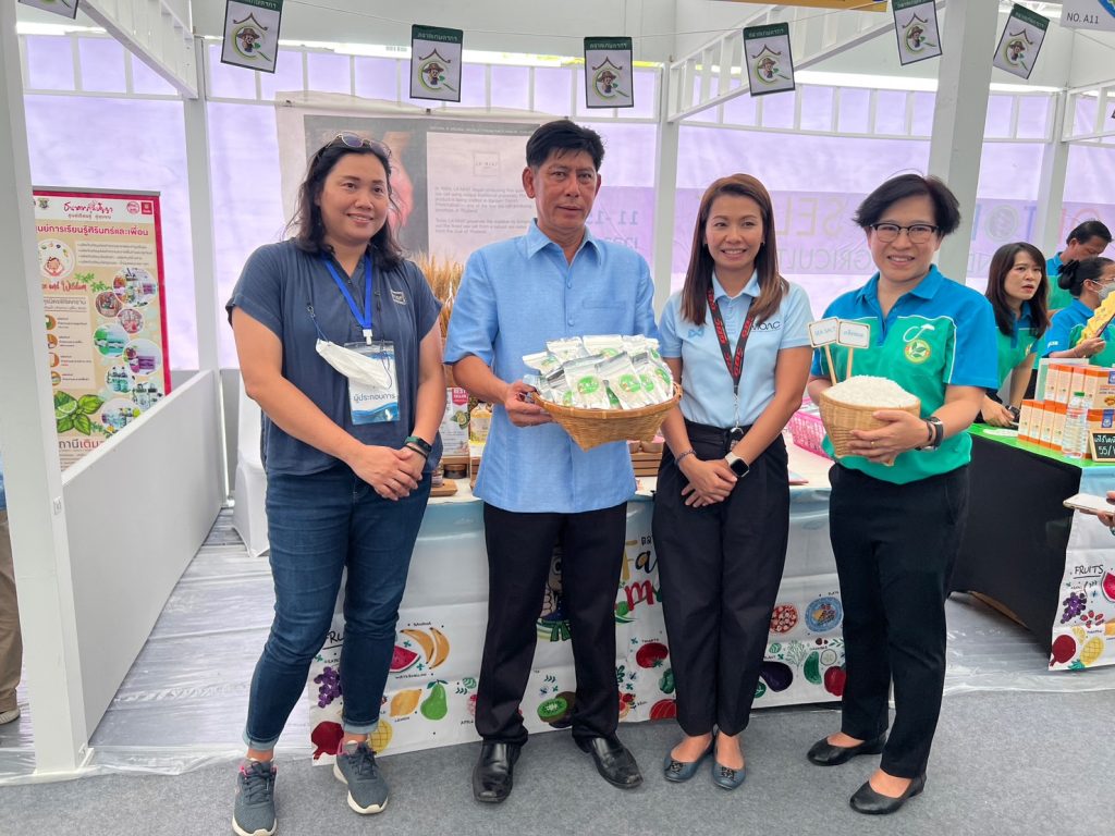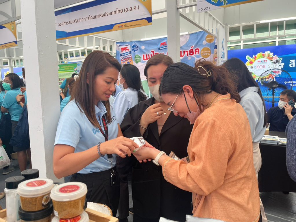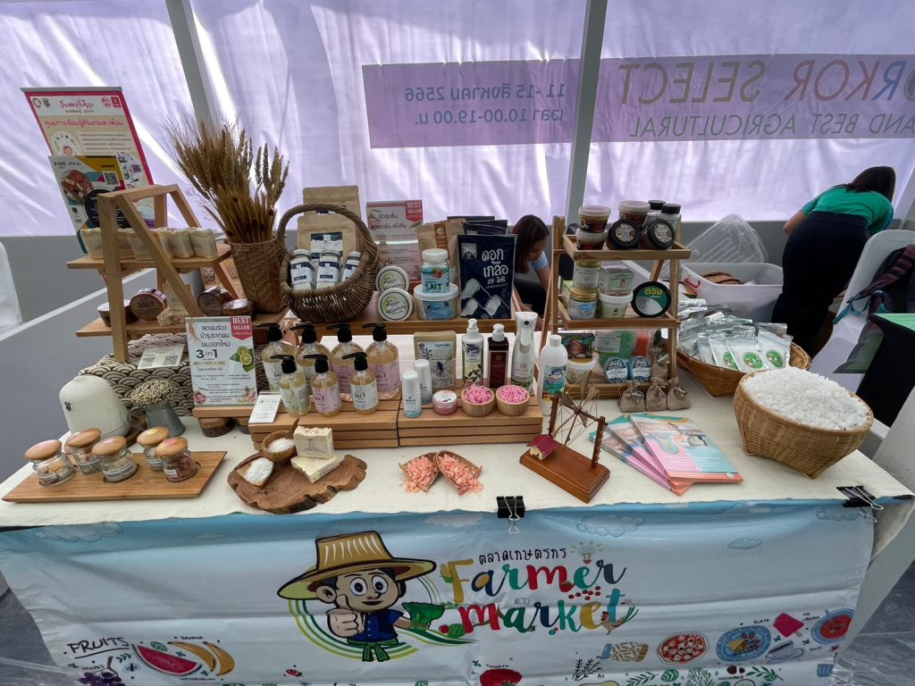 นางสาวนันทมาส ทองปลี หัวหน้าสำนักงานเลขานุการคณะกรรมการพัฒนาเกลือทะเลไทย (สลท.) และคณะเจ้าหน้าที่กรมส่งเสริมการเกษตร ร่วมจัดนิทรรศการแสดงผลิตภัณฑ์เกลือทะเลไทย ในงาน “อ.ต.ก. สินค้าเกษตรคุณภาพสูง ORTORKOR SELECT THAILAND BEST AGRICULTURAL” ในวันศุกร์ที่ 11 สิงหาคม 2566 ณ ศูนย์แสดงสินค้าผลิตภัณฑ์คุณภาพสูง โดยมีนายประยูร อินสกุล ปลัดกระทรวงเกษตรและสหกรณ์ เป็นประธานพิธีเปิดงาน